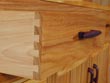 This credenza was originally intended for a lawyer’s office. It has three drawers and two large storage spaces. All the drawer and door pulls are hand-carved cocobolo. When the piece arrived at his office, the client liked it so much he brought it home with him!
